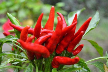 朝天椒是茄科植物朝天椒的果实,一年生或有限多年生植物,其果实较小,圆锥状,成熟后红色或紫色。朝天椒的味道极辣,具有补充营养、增进食欲、健胃消食等功效。
