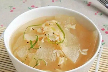 白萝卜虾皮汤是由白萝卜和虾皮加工制作而成,适量喝白萝卜虾皮汤具有补钙、润肠通便、补充水分等功效。