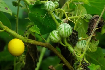黄果茄为直立草本或匍匐草本,初时绿色并具深绿色条纹,成熟后则变为淡黄色,种子近肾形,扁平,可晒干或鲜用。黄果茄具有祛风除湿、消瘀止痛等功效。