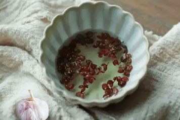 洗净后的花椒、大蒜放入锅中加水,煮制一段时间后饮用。