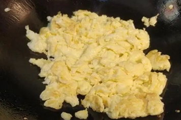 在锅中加入适量食用油并打入鸡蛋,经过加热凝固后加入适量白糖及其他调味品,适当翻炒后可食用。