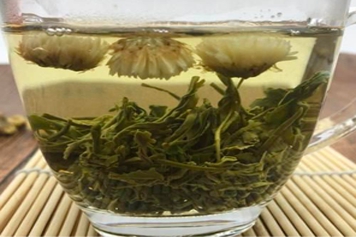 取适量绿茶、菊花,用热水冲泡即可饮用。