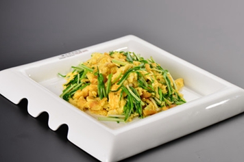鹅蛋外表较光滑,体积较鸡蛋和鸭蛋大,含有脂肪、矿物质等营养成分。蒜苗是大蒜幼苗发育到一定时期的青苗,含有维生素、矿物质等营养物质,故鹅蛋炒蒜苗具有补充营养、促进消化的功效。