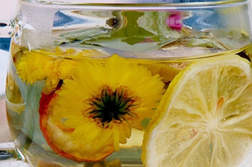 冬瓜荷叶柠檬茶中,冬瓜与柠檬性质偏凉,且冬瓜瓤滋润多液,合用可生津解暑除烦,清热利水祛火,可缓解中暑、口渴等症状。
