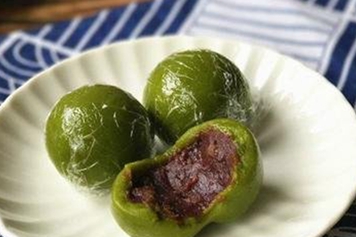 豆沙青团是一种特色小吃,其由糯米粉、豆沙、艾叶等食材加工制作而成,色青绿,一般为扁球形。豆沙青团具有补充营养、补充能量等功效。