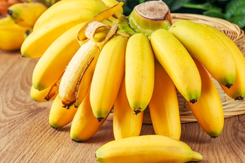 帝王蕉又叫小米蕉,主要产于广东、海南地区,果肉芳香,蕉皮青绿色或鹅黄色,剥掉蕉皮,肉质呈鹅黄色,酸甜可口,芬芳扑鼻,且其中含有丰富的碳水化合物、膳食纤维、维生素等营养物质,具有补充营养,润肠通便的功效。