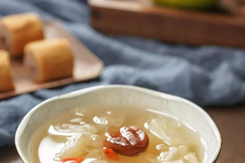 小吊梨汤是北京一道传统的汤品,由梨子、银耳、冰糖、话梅、枸杞等食材组成,味道可口,营养丰富。小吊梨汤具有补充营养、滋润咽喉、促进排便的功效。