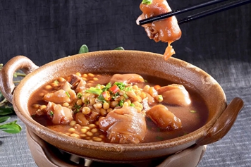 黄豆炖猪脚主要是由黄豆和猪脚两种食材制成,黄豆中含有丰富的蛋白质、碳水化合物、钙元素、铁元素、维生素C等成分,猪脚中含有胶原蛋白、脂肪、钙元素、维生素A等营养成分,故黄豆炖猪脚可达补充营养、提供能量等功效。