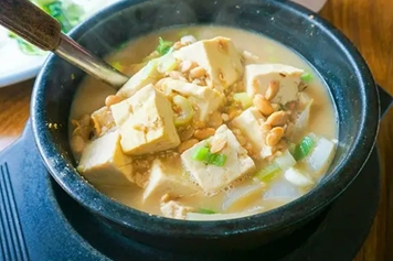 黄瓜豆腐汤中含有大量水分,适量食用可帮助机体补充一定的水分,促进机体新陈代谢。