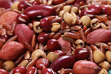 红豆味甘,性平,入脾、大肠、小肠、心经;红米性温,味甘,归肝、脾、大肠经;花生性平,味甘,归脾、肺经。红豆红米花生同用具有补充营养、健脾益气、润肠通便的功效。