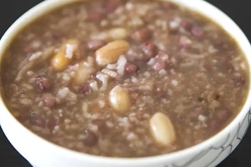 红豆、花生和小米性质甘润,甘可补益,且三者均入脾经,小米兼入胃经,可补脾胃亏虚,故红豆花生小米粥具有健脾养胃的功效,适用于脾胃虚寒等证。