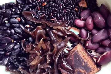 黑豆为豆科草本植物大豆的干燥成熟种子,而木耳为寄生真菌木耳科木耳的子实体。黑豆和木耳的营养成均较丰富,一起食用具有润肠通便、补充营养等功效。