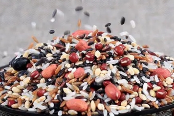 黑米为禾本科植物黑稻的种子,富含B族维生素、蛋白质、钙、铁、锌等营养物质。花生为豆科植物落花生的种子,含有脂肪、蛋白质、多种维生素,营养价值较高,黑米花生具有补充营养、缓解便秘等功效。