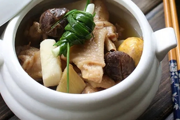 花菇炖鸡汤由花菇与鸡肉炖煮而成。花菇是低脂肪、多糖、多种氨基酸和多种维生素的菌类食物。鸡肉主要含有蛋白质,还含有钙、磷、铁和各种维生素及少量的脂肪,是一种低脂肪、高蛋白食品。因此,花菇炖鸡汤具有补充营养、辅助保护心脑血管等功效。