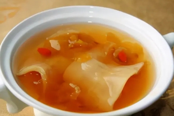 莲子味甘而涩,入肾经,能益肾固精。花胶味甘,性平,入肝、肾经,可以补肾益精。所以适量食用花胶莲子百合汤具有益肾涩精的作用,可用于肾虚所致的遗精、滑精、尿频等。