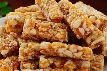 花生糖是由花生、蔗糖、饴糖制作而成的零食,属于传统小吃,香甜酥脆、物美价廉,具有提供能量、补充营养等功效。