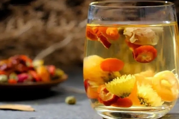 桂圆味甘,性温,归心、脾经;红枣味甘,性温,归脾、胃、心经;枸杞味甘,性平,归肝、肾经;菊花味辛、甘、苦,性微寒,归肺、肝经。桂圆红枣枸杞菊花茶具有滋阴安神、清肝明目等功效。