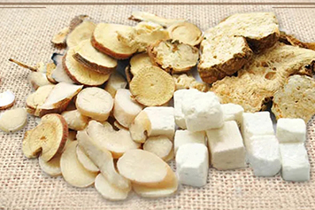 茯苓味甘、淡,性平,归心、肺、脾、肾经;白术味甘、苦,性温,归脾、胃经;白芍味苦、酸,性微寒,归肝、脾经。茯苓白术白芍同用具有健脾益气、利水渗湿、养血敛阴等功效。