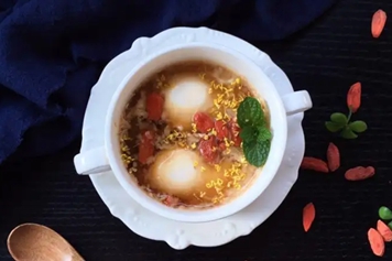 黄酒鸡蛋红糖水是以黄酒、鸡蛋、红糖为原材料熬制而成的糖水,黄酒味苦性辛、温,归肝、胆经;鸡蛋又名鸡卵,性味甘平;红糖味甘性温,归肝、脾经,黄酒鸡蛋红糖水具有益精补气、温经活血等功效。