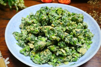 茴香菜炒鸡蛋即使用茴香的鲜嫩茎叶与鸡蛋翻炒而成的菜肴,其中含有丰富的蛋白质、膳食纤维等营养物质,具有补充营养、促进胃肠道蠕动等功效。