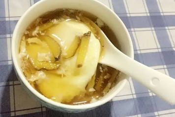 姜蛋即姜鸡蛋,其中所用的生姜为姜科植物姜的新鲜根茎,味辛,性微温,归肺、脾、胃经。所用的鸡蛋为雉科动物家鸡的卵,味甘,性平,归脾、胃经。姜蛋具有温中止呕、补虚强壮的功效。