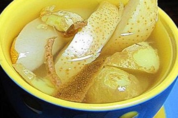 生姜梨子冰糖煮水由生姜、梨子、冰糖等加工制作而成,其中生姜味辛、性微温,归肺、脾、胃三经。梨子味甘、微酸,性寒,归肺、胃二经。冰糖性平、味甘,归肺、脾二经。生姜梨子冰糖煮水具有化痰止咳、养阴生津等功效。