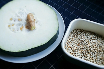 生姜为姜科植物的新鲜根茎,其味道辛辣。薏米为禾本科一年生或多年生作物薏苡的种仁,其味清香,生姜薏米水具有补充营养、缓解便秘等功效。