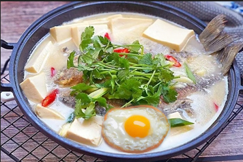 鲫鱼豆腐鸡蛋汤中鲫鱼、豆腐、鸡蛋含有脂肪,并含有大量的维生素、人体所必须的氨基酸以及钙、磷、镁等矿物质能提供人体所必须的能量,缓解疲劳。