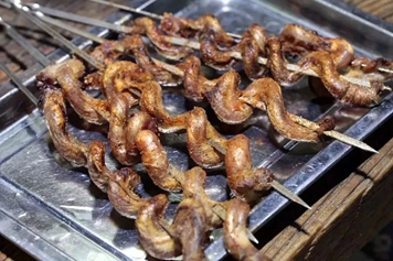 烤羊鞭是用羊鞭制成的食物,其味甘、性温,入肾经。烤羊鞭含有蛋白质、脂肪、碳水化合物等营养成分,具有补益肾气、补充营养的功效。
