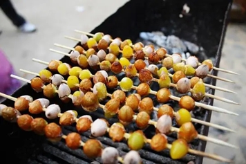 烤银杏果又名白果,含有蛋白质、脂肪、维生素及微量元素等营养成分,其味甘、苦、涩,性平,入肺经,具有补充营养、敛肺定喘的功效。