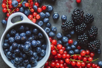 蓝莓是杜鹃花科越橘属蓝果类型植物的俗称,为蓝色的浆果,其中含有果胶、维生素等多种营养成分。桑葚又叫桑椹子,为桑科植物桑树的果穗,其中含有糖、矿物质等多种营养成分。蓝莓桑葚具有补充营养、促进消化的功效。