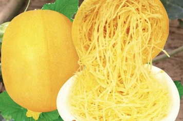 金丝绞瓜为葫芦科南瓜属植物,金丝瓜成熟时表皮为金黄色,色味独特,营养丰富,具有补充营养、润肠通便等功效。