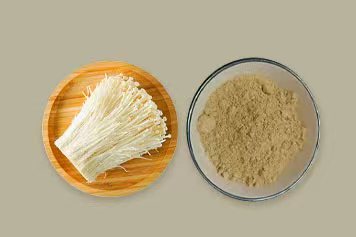 金针菇粉味甘,性微寒,入脾、胃、肺经,具有补脾益肺、润燥化痰的功效,可用于口咽干燥、咳痰等症。
