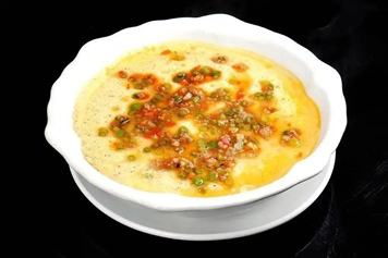 酒糟蒸蛋是由酒糟、鸡蛋蒸制而成,酒糟为米、麦、高粱等酿酒后剩余的残渣,鸡蛋营养丰富,酒糟蒸蛋具有健脾暖胃、增进食欲等功效。