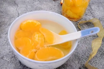 取适量桔子分成瓣,放入锅中加入清水、冰糖熬煮,待桔子软烂,冰糖融化后即可盛出饮用。