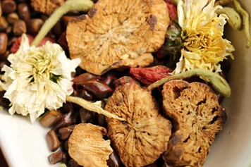 菊花味苦性微寒,有清热解毒之效;牛蒡根辛苦性凉,可外散风热,内解热毒。因此菊花决明子枸杞牛蒡根茶具有解毒消肿的功效,可用于改善痈肿疮毒、丹毒、咽喉肿痛、齿龈肿痛等热毒症状。
