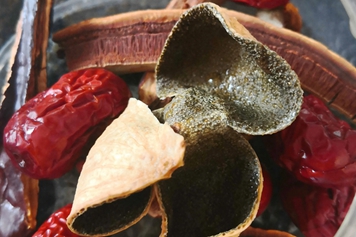 灵芝为多孔菌科眞菌赤芝或紫芝的干燥子实体,其味甘,性平,归心、肺、肝、肾经。枸杞为茄科植物宁夏枸杞的干燥成熟果实,其味甘、性平,归肝、肾经。陈皮为芸香科植物橘及其栽培变种的干燥成熟果皮,其味苦辛、性温,归脾、肺经。灵芝陈皮枸杞泡水喝具有止咳平喘、益精明目的功效。