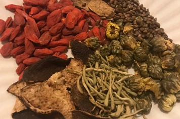菊花可清泻肝热以明目,决明子可清肝明目,枸杞长于滋肾精、补肝血,有益精明目的功效,因此菊花枸杞决明子金银花甘草陈皮同用具有明目的功效,可用于目失所养、眼目昏花、视物不清等。