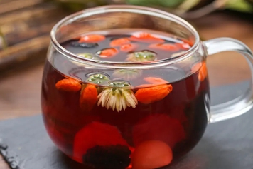 枸杞可滋肾精、补肝血,桑葚可滋阴补血,龙眼可养血安神,故菊花枸杞桑葚龙眼茶具有滋阴补血的功效,常可用于血虚萎黄、乏力之症。