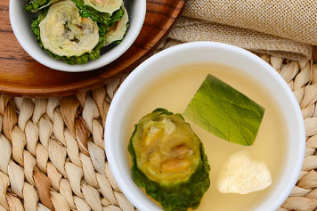 苦瓜荷叶冬瓜茶中苦瓜为葫芦科植物苦瓜的果实,味苦,性寒,归心、脾、肺经。荷叶为睡莲科植物莲的叶,归心、肝、脾经,性平,味苦、涩。冬瓜为葫芦科植物冬瓜的果实,归肺、大肠、小肠、膀胱经,性微寒,味甘、淡,苦瓜荷叶冬瓜茶具有清热解暑、利水燥湿的功效。