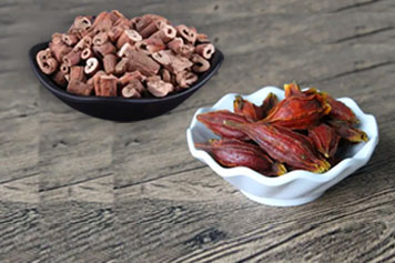 牡丹皮为毛茛科植物牡丹的干燥根皮,常在秋季采挖根部,除去细根和泥沙,剥取根皮,晒干入药,其味苦、辛,性微寒,归心、肝、肾经。栀子为茜草科植物栀子的干燥成熟果实,其味苦,性寒,归心、肺、三焦经。牡丹皮和栀子同用具有清热凉血、消肿止痛的功效。
