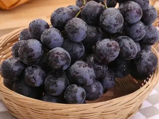 玫瑰香黑提为提子的一个品种,果皮蓝黑色,口感清爽酸甜,含有丰富的营养物质,具有补充营养、润肠通便的功效。