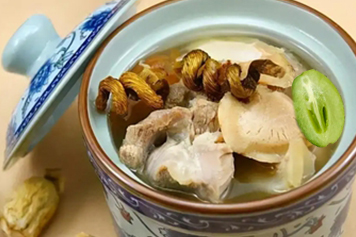 青橄榄石斛瘦肉汤中青橄榄味甘酸以化阴,可生津利咽。石斛味甘性微寒,归胃经,可滋养胃阴、生津止渴。故青橄榄石斛瘦肉汤具有养胃生津的功效,可用于胃热阴虚之胃脘隐痛、食少干呕等病症。