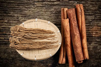 肉桂为樟科植物肉桂的干燥树皮,当归为伞形科植物当归的干燥根。肉桂当归合用具有散寒止痛、补血活血等功效。