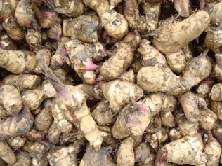 南薯根茎呈圆锥形,先端有茎基,周围被有数枚叶鞘,表面所棕色或灰黄色。节明显,具细根或点状根痕。质坚硬,断面粉性。气微,味淡。