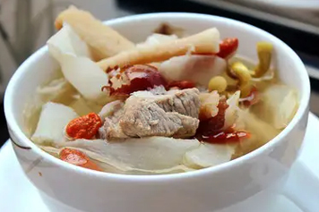 沙参玉竹瘦肉汤中的沙参、玉竹均可清肺热、养肺阴,瘦肉归胃经,因此有益胃生津的功效,适用于胃阴不足、咽干口渴、大便干结、食欲不振等。