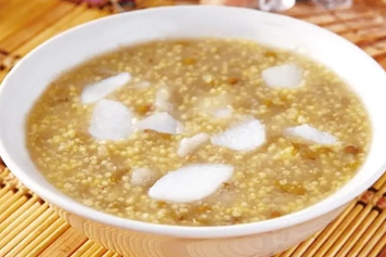 绿豆、山药和粳米均可归脾、胃经,能补脾气、益脾胃之阴,绿豆山药粥具有滋阴补气的功效,常可用于脾虚食少、食少便溏等症。