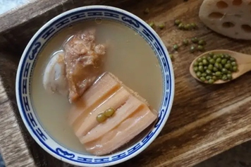 绿豆莲藕猪骨汤的主要原料有绿豆、莲藕、猪骨,绿豆为豆科植物绿豆的干燥种子,莲藕为莲肥大的地下茎,猪骨为猪科动物猪的骨头。绿豆莲藕猪骨汤具有补充营养、润肠通便的功效。
