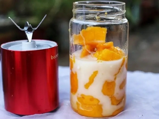 芒果为漆树科植物芒果的果实未成熟前芒果的果皮呈绿色;牛奶是较常见的饮品,两者营养较丰富,芒果牛奶汁具有补充营养、促进消化、增进食欲的功效。