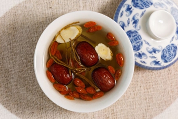 红参可大补元气,可补益脾肾之气,枸杞补肾益精,红枣健脾胃、调营卫。因此红参红枣枸杞茶可发挥补肾健脾功效,用于头晕目眩、腰膝酸软、食少便溏等病症。